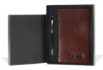 notebook A6 et un stylo à bille.