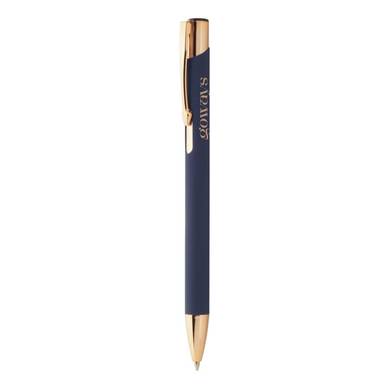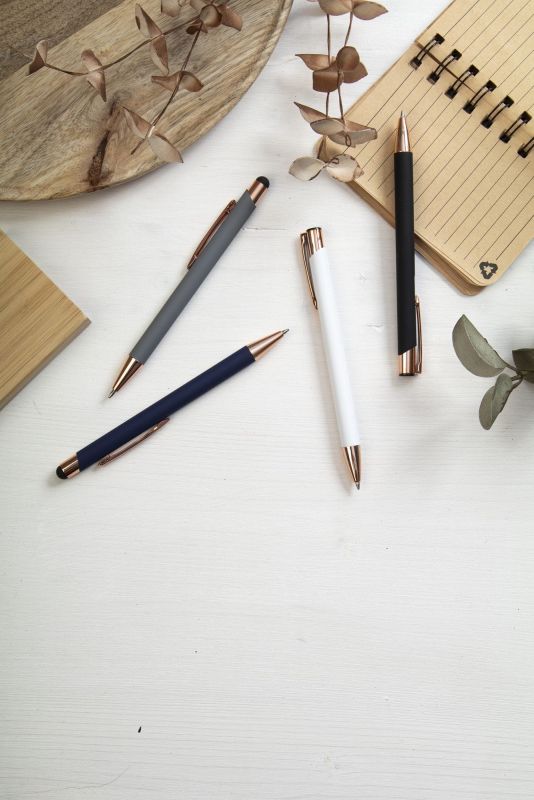 Stylo à bille SIGNATURE ROSE en aluminium recyclé avec surface caoutchoutée et éléments en or rose pour gravure laser miroir en or rose