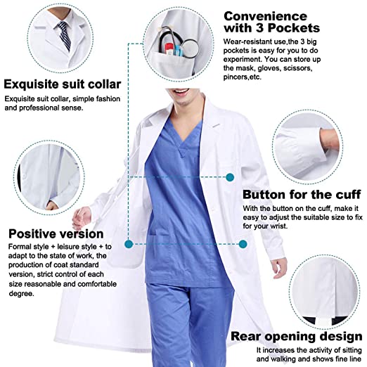 TABLIER Blanc Laboratoire Tablier Docteur Hôpital Scientifique Déguisement École Costume pour Étudiants Adultes